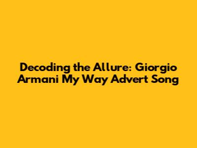 Hey everyone! Ever found yourself utterly captivated by a perfume commercial, especially the one for Giorgio Armani's My Way? You're not alone! These ads, with their stunning visuals and evocative music, have a knack for drawing us in. Today, we're diving deep into the heart of this phenomenon, specifically focusing on the Giorgio Armani My Way advert song. We'll explore the song's significance, its role in the ad's success, and why it resonates so deeply with audiences. Believe me, understanding the music is like unlocking a secret level of appreciation for the entire campaign. So, grab your favorite drink, and let's get started!
