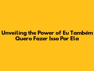 Unveiling The Power Of Eu Também Quero Fazer Isso Por Ela