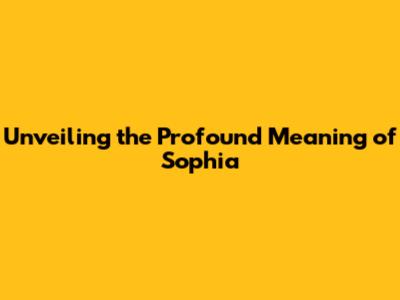 Unveiling The Profound Meaning Of Sophia