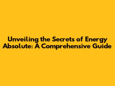 Unveiling The Secrets Of Energy Absolute: A Comprehensive Guide