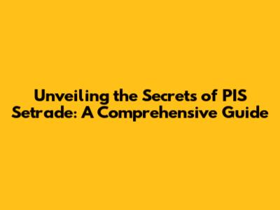 Unveiling the Secrets of PIS Setrade: A Comprehensive Guide