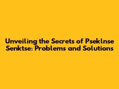 Unveiling The Secrets Of Pseklnse Senktse: Problems And Solutions