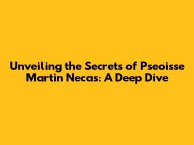 The Impact and Significance of Pseoisse Martin Necas in Modern Society