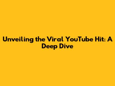 Unveiling The Viral YouTube Hit: A Deep Dive