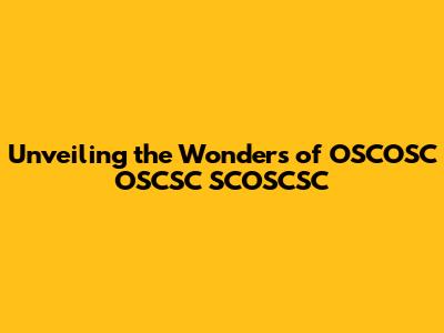 Unveiling The Wonders Of OSCOSC OSCSC SCOSCSC