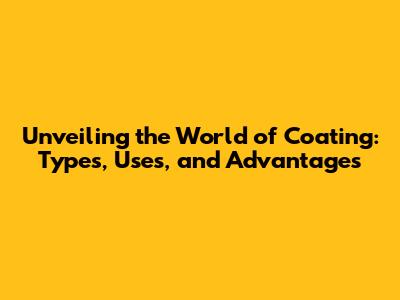 Unveiling The World Of Coating: Types, Uses, And Advantages
