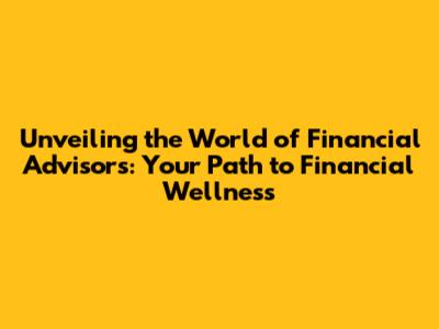 Unveiling The World Of Financial Advisors: Your Path To Financial Wellness