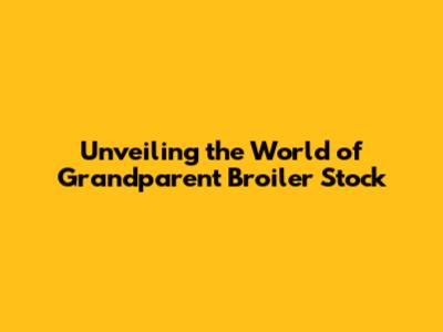 Unveiling The World Of Grandparent Broiler Stock
