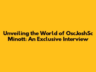 Unveiling The World Of OscJoshSc Minott: An Exclusive Interview