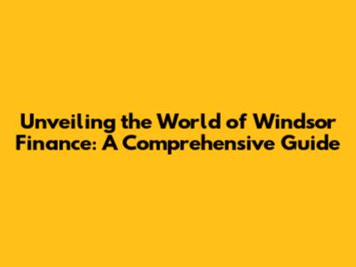 Unveiling The World Of Windsor Finance: A Comprehensive Guide