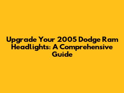 There you have it! A complete guide to upgrading the headlights on your 2005 Dodge Ram. By following these steps and tips, you can transform your truck's appearance, improve your nighttime visibility, and enhance your overall driving experience. Whether you're going for a sleek, modern look with LEDs or a powerful, focused beam with HIDs, the right headlight upgrade can make a huge difference. Don't be afraid to take on this project yourself – it's a rewarding way to improve your truck and learn more about its mechanics. Remember to always prioritize safety, follow the instructions carefully, and enjoy the process. Good luck, and happy upgrading! With this knowledge, you are ready to start. So get ready to take your 2005 Dodge Ram headlight upgrade and transform your truck today!