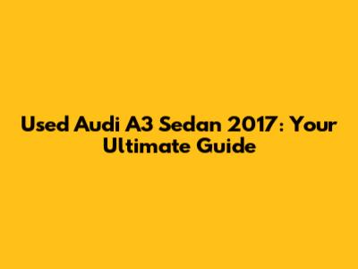 Used Audi A3 Sedan 2017: Your Ultimate Guide