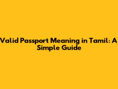 Valid Passport Meaning In Tamil: A Simple Guide