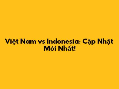 Việt Nam Vs Indonesia: Cập Nhật Mới Nhất!