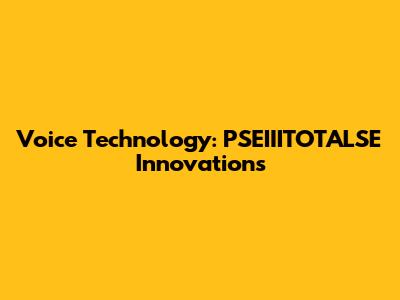 Voice Technology: PSEIIITOTALSE Innovations