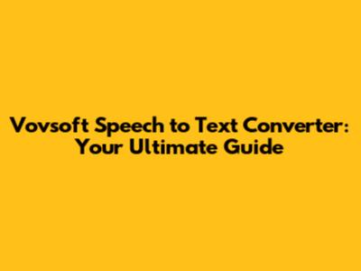 Vovsoft Speech To Text Converter: Your Ultimate Guide
