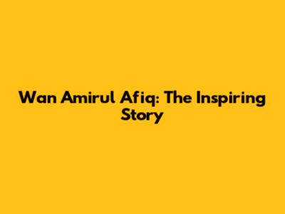 Wan Amirul Afiq: The Inspiring Story