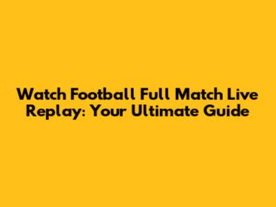 Watch Football Full Match Live Replay: Your Ultimate Guide