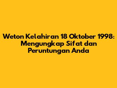 Hai, guys! Pernah penasaran nggak sih sama makna di balik tanggal lahir kamu, terutama kalau kamu lahir di tanggal 18 Oktober 1998? Nah, di Indonesia, weton masih jadi semacam panduan spiritual yang dipercaya bisa ngasih gambaran soal sifat, karakter, rezeki, sampai jodoh seseorang. Jadi, buat kamu yang lahir di tanggal spesial ini, yuk kita kupas tuntas apa aja sih arti weton 18 Oktober 1998!