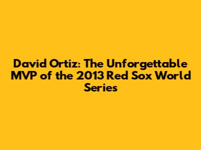 Yo, baseball fanatics! Let's rewind the clock to 2013, a year etched in the memories of Red Sox Nation. That was the year the Boston Red Sox, against all odds and fueled by an incredible city spirit, clawed their way back to the top and clinched the World Series title. And who was the undisputed king of that magical run? None other than the legendary David Ortiz, Big Papi himself! He was rightfully named the 2013 World Series MVP, and let me tell you, guys, it was a performance for the ages. This wasn't just about one clutch hit; it was about leadership, resilience, and a whole lot of heart that resonated with every single fan. Ortiz didn't just play the game; he was the game that year, inspiring his teammates and the entire city of Boston to believe when things looked bleak. His presence in the clubhouse was like a calm storm, always ready to unleash its power when it mattered most. He wasn't just a designated hitter; he was the heart and soul of that championship squad, a true leader who carried the weight of expectations with a smile and a powerful swing. The 2013 season was particularly poignant for Boston, coming less than a year after the tragic Boston Marathon bombing. The team took on the mantle of bringing hope and joy back to a city that desperately needed it. And Big Papi was the unwavering beacon, his every swing a defiant roar against adversity. His performance in that World Series wasn't just statistically dominant; it was emotionally charged, a testament to his enduring legacy and his deep connection with the city he called home. He embodied the resilience and fighting spirit of Boston, making his MVP award feel like a victory for everyone.