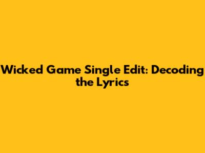 Wicked Game Single Edit: Decoding The Lyrics