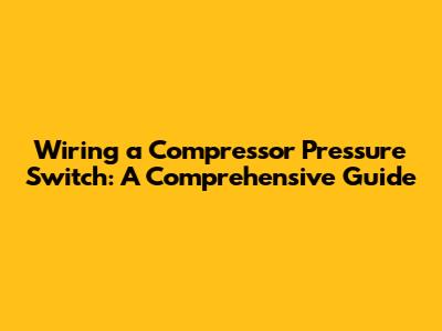 Wiring A Compressor Pressure Switch: A Comprehensive Guide