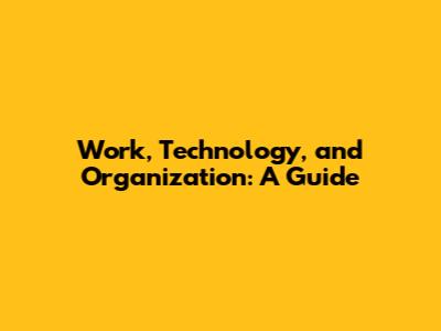 Work, Technology, And Organization: A Guide