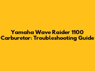 Yamaha Wave Raider 1100 Carburetor: Troubleshooting Guide