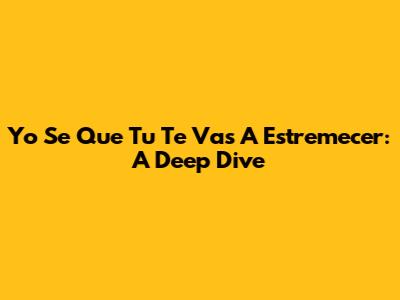 Yo Se Que Tu Te Vas A Estremecer: A Deep Dive