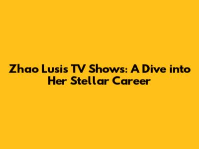 Zhao Lusi's TV Shows: A Dive Into Her Stellar Career